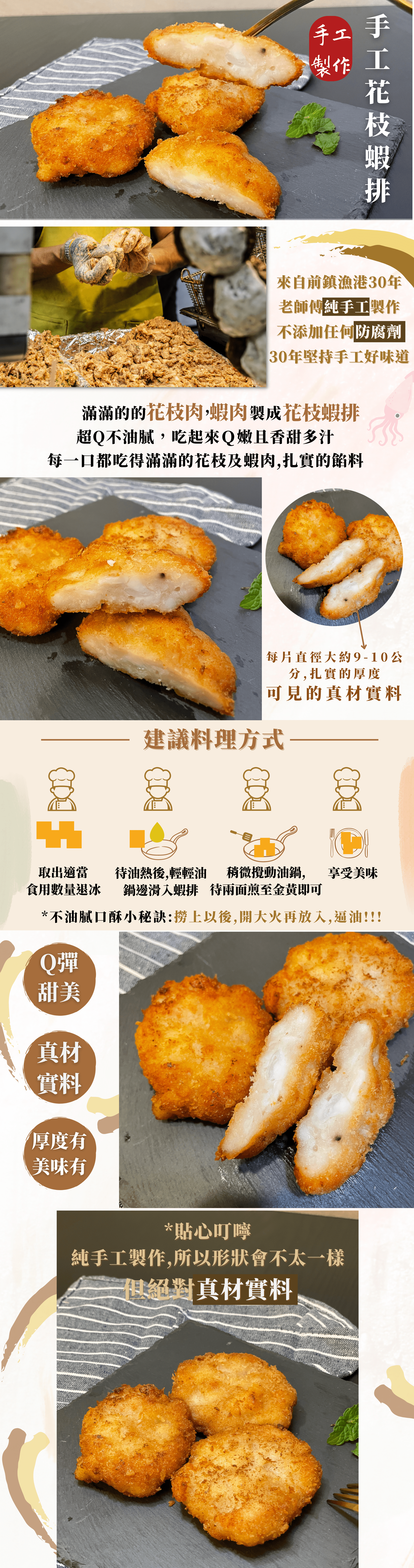 ◆ 純手工花枝蝦排,30年老師傅堅持純手工製作